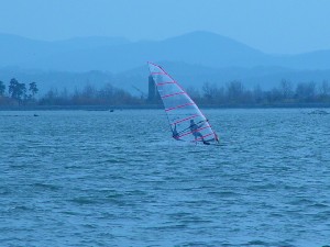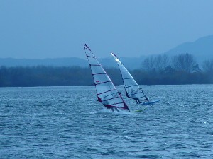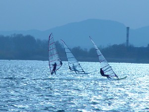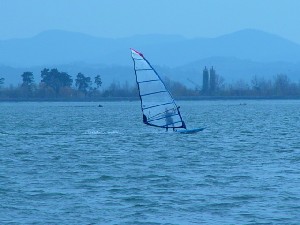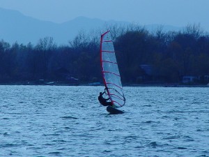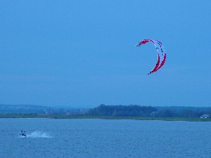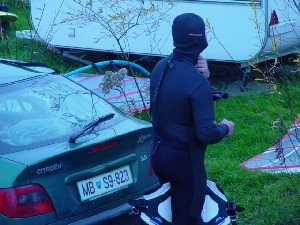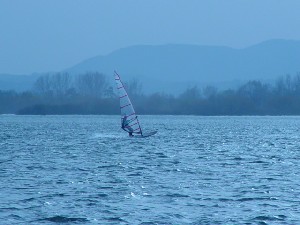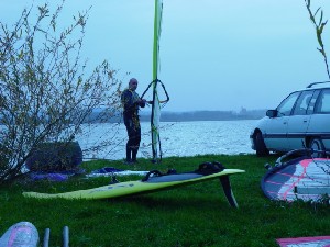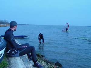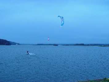 Sicer pa se je spot kot tak obnesel kar v redu. Velikost jezera je pisana na kožo formulašem in prav noben ni prišel niti do polovice jezera. Je pa problem z globino. Matjaž je prikazal enega izmed najlepših padcev: full speed s formulo in padec na globini vode 10 cm.. nekaj podobnega je prikazal tudi Rene. Najprej smo ga z daljnogledom gledali, kako glisira, potem smo pa videli samo še jato preplašenih ptic in Reneja, kako stoji sredi jezera do gležnjev v vodi in si ogleduje svoj megalomanski smernik. Voda je dovolj globoka, če ti seveda prej nekdo pokaže, kje so plitvine. Popoldne več ni bilo nobenega nasedanja. Upam, da se bomo drugo leto kdaj dobili na tem spotu ob bolj vetrovnem trenutku. Upam tudi na kakšen odziv sodelujočih in njihov opis lokacije.. Jezero po moje vredno obiska, če ga poznaš, pa tudi ni nobene nevarnosti za nasedanje. Še posebno, če se voziš po sredini... Super spot, kar je vidno s slik. Opozorilo: prijava opreme na carini je skoraj obvezna. Cariniki znajo težiti... |