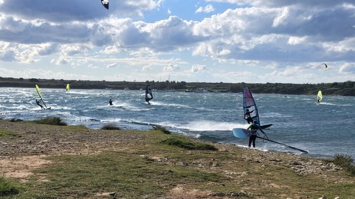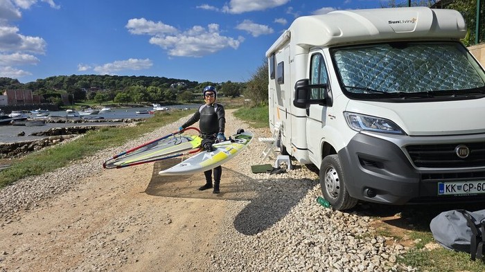 Po dolgem času bom dal zopet en report čeprav nisem imel ta namen in se nisem trudil, da bi naredil kaj lepih fotk. Močna burja v Ližnjanu je pihala ves dan, na vodi pa pravi rokenrol. Izredno veliko surfačev na spotu, na parkingu skoraj nisi našel več prostora za parkiranje. Za moje jadro 4 m2, je bilo zujutraj kar preveč vetra. Ob 11h sem štartal in napravil lepo črtico. Lepše bi bilo zame, če bi za spoznanje bilo malo manj vetrta, tako da na surfanju lahko dodaš še kaj svojega. Lp, Rafko |